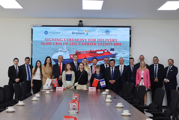 7月9日,Ocean Yield COO Andreas Reklev先生及我集團副總經(jīng)理兼揚子三井總經(jīng)理宋書明先生代表雙方簽署交船文件。